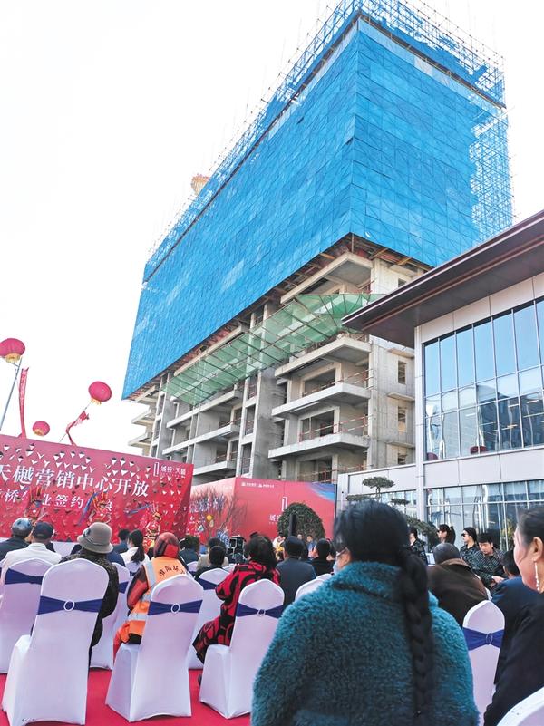 本报讯 淮阳区房地产市场的活跃度及产品品质,不管是与兄弟县(市)相比,还是放在周口中心城区衡量,都是走在前列的。3月12日,淮阳城投天樾项目举行营销中心开放暨康桥物业签约仪式,市民实地了解后,不禁为其优越的地段和一流的品质折服。城投天樾独具匠心的产品设计,像和煦的春风一样迅速吹遍古城,让追求更高品质生活的市民充满期待。