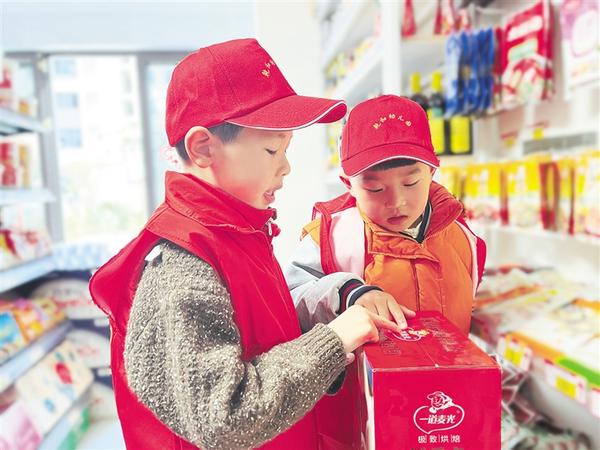3月15日,小朋友在超市认识和了解食品安全标志、绿色食品标志等食品安全基本标识。当日,市城乡一体化示范区仁和西区幼儿园乾和分园的小朋友们在老师的带领下,走进社区超市学习辨别商品真伪的本领,度过一个特殊的“3·15”消费者权益日。记者 姬慧洋 摄