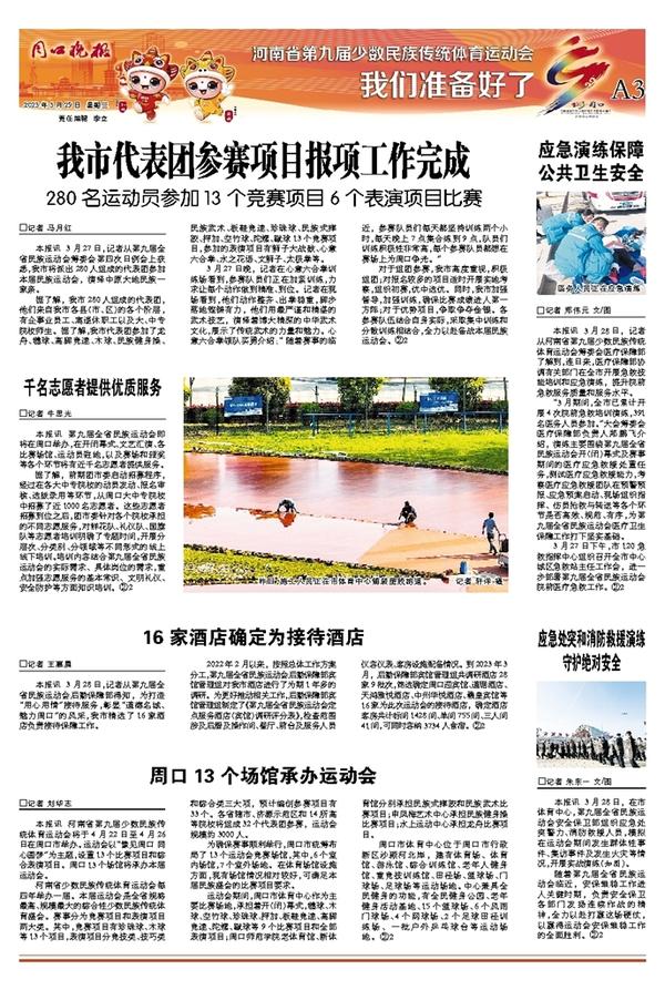 本报讯 3月28日,记者从第九届全省民族运动会后勤保障部得知,为打造“用心用情”接待服务,彰显“道德名城、魅力周口”的风采,我市精选了16家酒店负责接待保障工作。