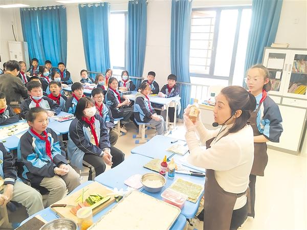 3月30日下午,周口实验学校六年级(3)班的学生正在老师的指导下做寿司。当日,该班学生在班主任宋老师的带领下参加“巧手做寿司”实践活动,亲自体验美食制作过程。活动中,宋老师讲解了寿司早在战国时期的《尔雅》里就有记载,中国人才是寿司的发明者,并带着孩子们逐一认识做寿司的材料,演示制作步骤。②2记者 王俊祥 通讯员 李云 摄