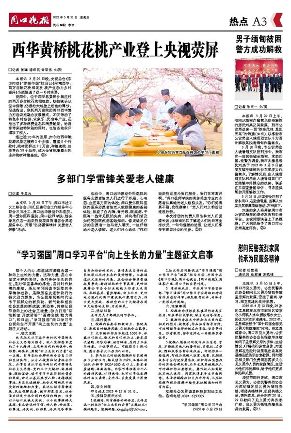 2.征文作品将择优在“学习强国”周口学习平台“推荐”栏目刊登,并同步在《周口日报》、周口电视台、《周口晚报》、周道客户端、周口手机台等刊发。