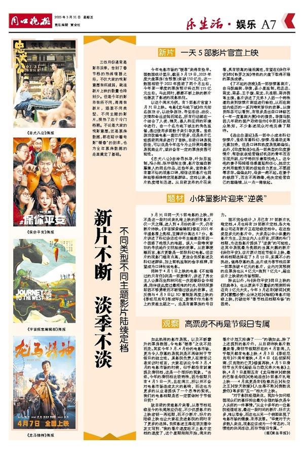 就目前的卖座影片来看,从春节档延续至今的长尾效应仍在,不少优质影片的上映密钥一再延期,而不少新片、好片的陆续上映也让大家在走进影院的同时有了更多的选择。资深影迷王路在朋友圈中发文写到:“我的看片速度赶不上影片定档的速度了,这个星期刚刚开始,周末的看片计划又排满了……”的确如此,除了上述提到的影片外,从目前待映影片数量来看,清明节假期所在的4月首周,几乎每天都有电影上映:4月3日《泰坦尼克号》25周年重映,4月4日《名侦探柯南:贝克街的亡灵》修复再映,4月5日清明节当天有《超级马力欧兄弟大电影》上映,4月7日星期五有《龙马精神》《燃烧的巴黎圣母院》《绝地追击》3部影片扎堆上映……4月底更是有《检察风云》《长空之王》《惊天救援》《人生路不熟》《倒数说爱你》等多部“五一”档大片上映。
