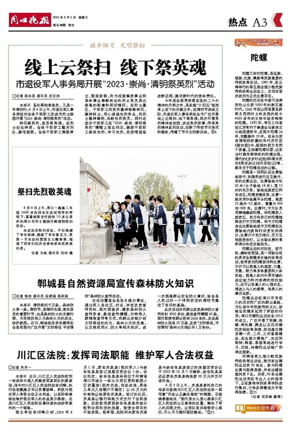 陀螺运动在周口市有悠久的历史和广泛的群众基础,为弘扬中华民族传统文化,助推全民健身起到了积极的作用。周口市鞭陀运动协会2012年成立,广泛开展了软鞭、刚鞭、特长鞭、舞龙以及花式鞭陀走钢丝等表演,自创盘古健身鞭一式、二式、三式套路鞭法,在全国大赛推广,先后到朝鲜、韩国、泰国等地进行学习、交流,将鞭陀运动推广到周边国家。