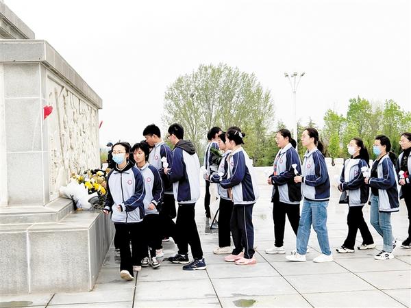 4月4日上午,周口一高高二年级1400多名师生在该校领导的带领下,冒着细雨步行前往10多公里外的周口市烈士陵园开展清明祭扫活动。