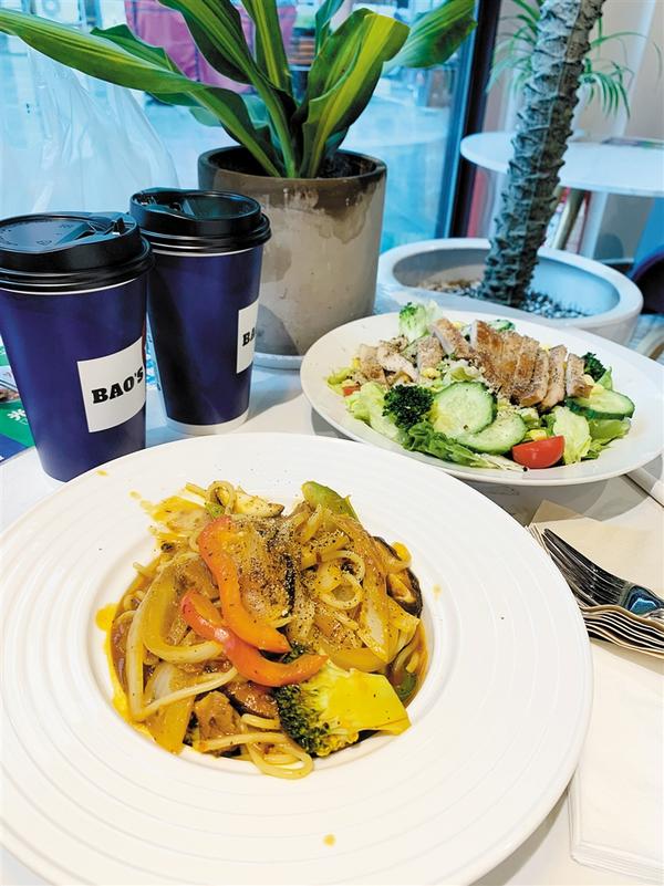 “鸡肉田园蔬菜沙拉热量不高、价格不贵,是我们店里卖得最好的轻食产品。”近日,记者来到位于庆丰路上的一家轻食店,店员告诉记者,如今店里推出了一款超值双人餐,仅售68元,包含一份鸡肉田园蔬菜沙拉、一份番茄黑椒牛肉意面、一份椒盐薯条和两杯饮品。记者随即自费点了这款双人套餐,品尝后发现,茶饮是无糖的,食品饱腹感强、没有多余的调料,更多的是食物本身的味道。