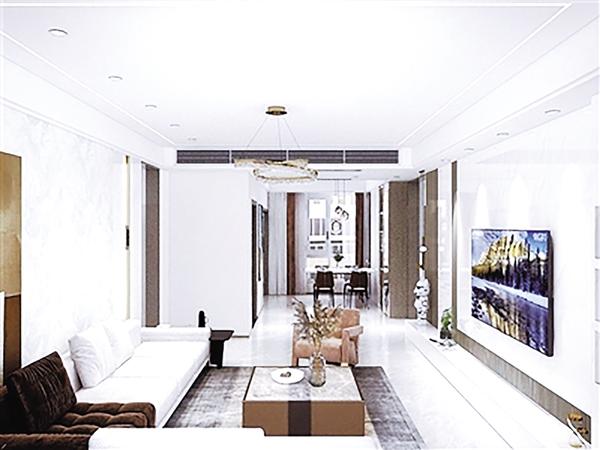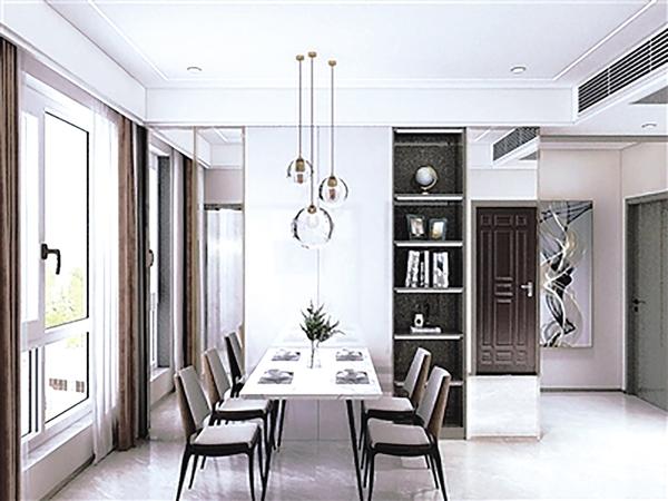 客厅利用石膏板打造“双眼皮”吊顶,轻盈自在,餐厅方向利用吊顶内置中央空调,不仅美观大方,释放地面空间,还使全屋呈“零”温差状态,居住更舒适。