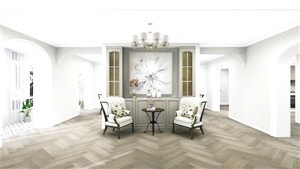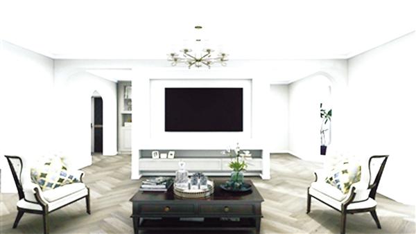 客厅面积较大,跨距长达7米,观影视距不佳,且上方有一处较为明显的横梁,视觉上略显压抑,成为设计师首要解决的问题。