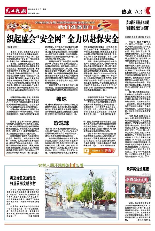 在即将举行的河南省第九届少数民族传统体育运动会上,我市将派出14名选手参加珍珠球竞技比赛,他们年龄在20岁左右,目前正在郑州进行集训,力争在竞技场上发挥出最佳状态,取得满意成绩。①6(记者 田亚楠 整理)