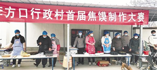 近日,西华县东王营乡李方口村举行焦馍制作大赛,村民们欢声笑语、齐聚一堂,以首届桃花节为契机,充分发掘区域生态文化优势,描绘东王营乡乡村振兴崭新画卷。图为村民在焦馍制作大赛现场制作焦馍。通讯员 赵彤 摄