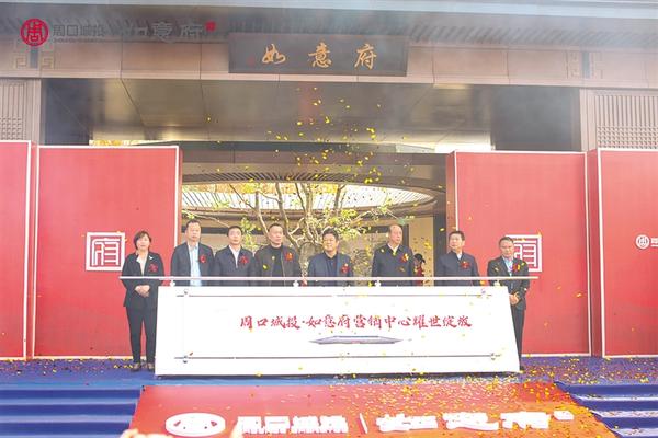4月8日,周口城投如意府项目营销中心正式开放。当日上午,开放仪式在中心城区七一路与滨河北路交会处附近项目门前广场举行。南侧的沙颍河波光潋滟柳条柔,风光宜人。靠近项目的滨河北路两侧彩旗猎猎,广场上笑语声喧。项目主大门极具中式传统建筑府园风格,大门两侧的两尊石狮让形象门更显庄重典雅,石狮外侧的两棵高大迎客松则为形象门增加了灵动气质。仪式在热烈喜庆的气氛中进行。