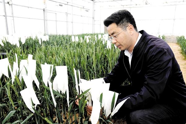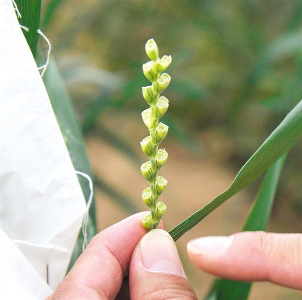 4月9日,市农科院副院长、小麦育种专家韩玉林在试验棚内查看小麦去雄、套袋情况。小麦育种是一个漫长过程,也是一个“绣花”的过程,去雄就是将亲本材料麦穗从旗叶中剥开,用剪刀将小花顶部剪除,拿镊子将小花中的雄蕊夹出去,过几天后再进行人工授粉,完成事先制定的杂交组合。