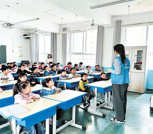 为关爱未成年人心理健康问题,帮助其增强情绪控制能力,近日,周口市小百灵社会工作服务中心为开来路小学的学生进行“心灵守护,快乐成长”关爱未成年人心理健康讲座。②2记者 杜林波 摄