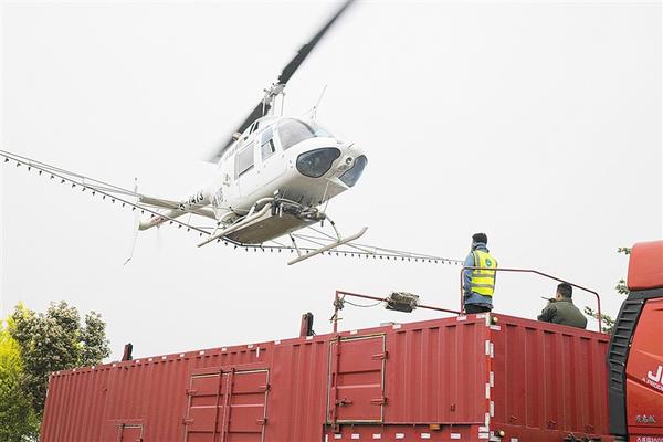 4月18日,一架农用直升机在商水县高标准农田里的一辆卡车上起飞为小麦喷洒农药。当日,在商水县高标准农田核心区内,机器轰鸣,4架农用直升机、50多架无人植保机在低空中来往飞行,施肥、打药,一派繁忙景象。记者 付永奇 摄