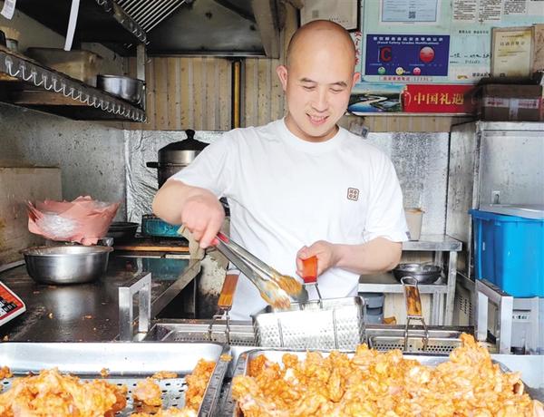 有两位老顾客特意从市区西边来到王红军的小店买炸鸡吃,还说:“‘光头哥’,啥时候把你的店开到西边去?这样俺每天都能吃上你家的炸鸡了。”