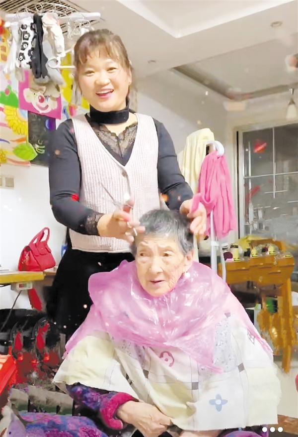 因为老人上楼下楼不方便,多年前冯艳萍就买来理发工具,当起了“家庭理发师”。“公公婆婆虽说没有生我养我,可他们生了孩子他爸,今生能有幸成为一家人,就是注定的缘分。父母在、家就在,一家人才会更加幸福美满。”