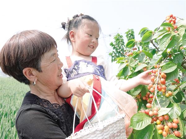 4月20日,在沈丘县周营镇李徐湾村,村民带着孩子采摘樱桃。当日,李徐湾村村民房前屋后樱桃种植面积达100多亩,一颗颗、一簇簇、一串串像红玛瑙般的樱桃缀满枝头,让人垂涎欲滴,樱桃成熟的消息引得不少游客自驾前来采摘。一颗小樱桃成为激活当地乡村振兴、农民增收的“大产业”。②16