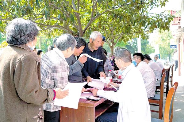 4月20日,医护人员为村民讲解健康知识。当日,周口市档案馆联合市中心医院在项城市付集镇双庙村开展“乡村振兴、健康同行”专家下乡义诊活动。活动中,医护人员为村民进行现场体检,并送上药品,此举受到村民的一致称赞。