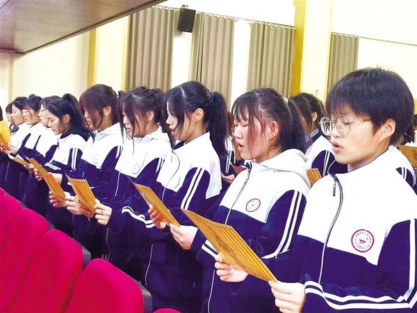4月23日,学生诵读老子经典著作《道德经》部分章节。当日,鹿邑县启动以“阅读新时代新经典 奋进新征程新伟业”为主题的2023年“4·23”世界读书日暨知识产权宣传周、“护苗绿书签进校园行动”等系列活动仪式。 此次活动旨在实施文旅文创融合战略,深入推进全民阅读,加强优秀出版物宣传推广力度,不断丰富人民群众精神文化生活,持续推动开创“书香鹿邑”建设新局面。记者 侯国防 摄