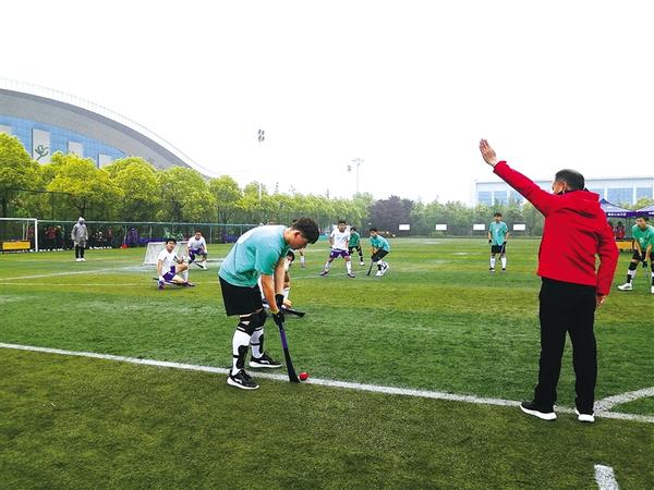 本报讯 4月23日上午,河南省第九届少数民族传统体育运动会木球比赛在周口市体育中心足球场挥板开赛。首场比赛在东道主周口代表队和郑州代表队之间展开。