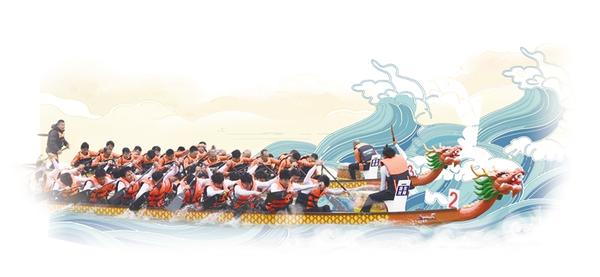 4月24日上午的龙舟赛上,队员们奋力冲刺,向冠军冲击。 记者 梁照曾 摄
