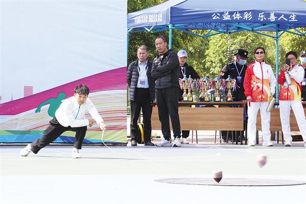 本报讯 缠绳、瞄准、蓄力、击中。4月25日,第九届全省民族运动会陀螺项目女子、男子个人比赛结束,男女“陀王”都是“00后”。