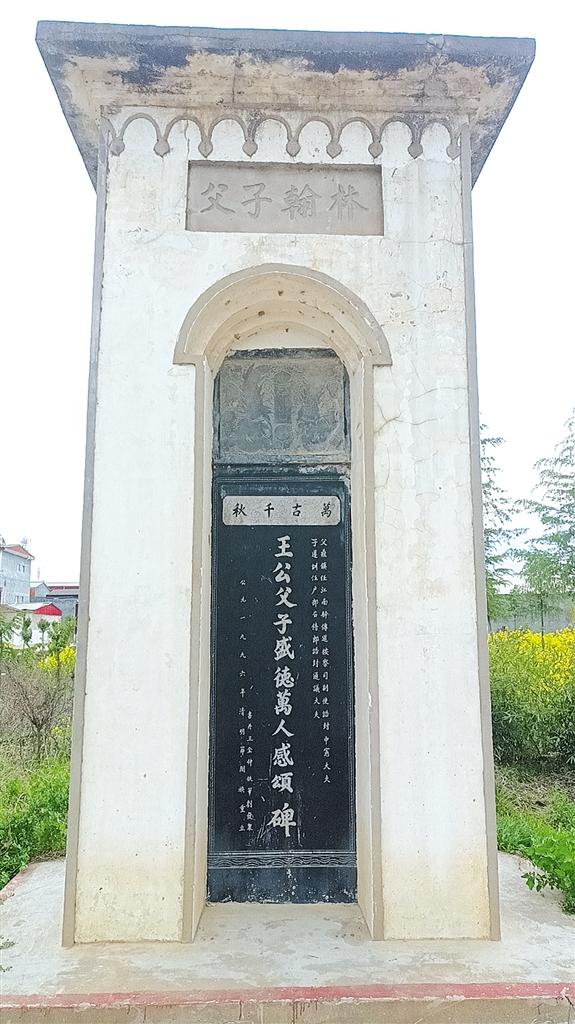 王鼎镇父子墓冢所在地,俗称王家坟,坟茔丛密,规模宏大。原王家祠堂位于墓园北侧,是上世纪六七十年代西华名校奉母联中所在地。现学校废弃,祠堂仅存大门和门柱楹联,联曰:“兰蕙承雨露,桃李报春晖”。此联用字虽有违联律,而文辞不差,初心是表现学子有感师恩,往深里想,似有孝道的延伸。门柱右侧,王氏双翰林碑依然耸立。