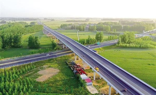4月29日上午,由河南中州路桥建设有限公司承建的淮阳区西三环跨商南高速大桥竣工通车。该桥全长500米,最大跨径为70米,最高点为12米,宽23米,双向6车道,是目前周口市境内干线公路最长桥梁。该项目于2020年开工建设,总投资9000万元,横跨商南高速公路,打通了G344淮西路至淮阳朝祖大道路段,在淮阳城区西部形成一条南北向的快速通道。②2记者 杜欣 摄