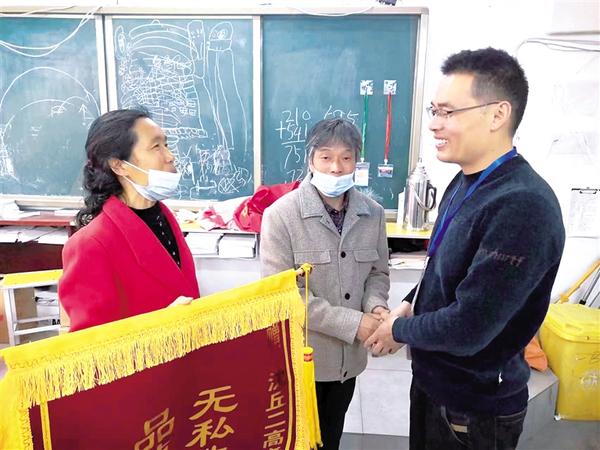 近日,沈丘县第二高级中学的南门口来了一对中年夫妇,他们拿出一面写有“无私救人献爱心 品德高尚暖人心”的大红锦旗,说是想见一位五年前的救命恩人。