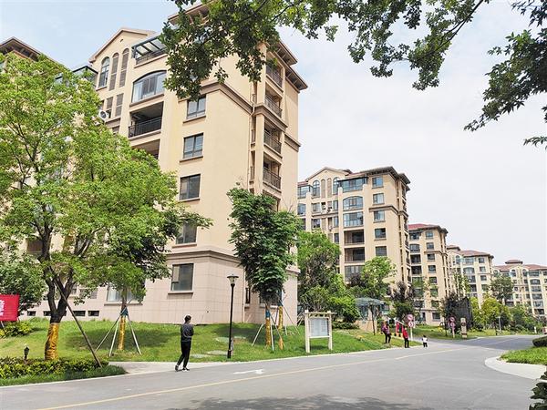 四期鸿泰园的洋房已经全部交付,十几栋洋房错落有致地布局于小区。小区内用作绿植的土丘绵延于楼体周围或楼与楼之间的公共部位,香樟、广玉兰、乌桕等名贵乔木栽植于土丘上,土丘上周围栽种桂花等灌木。色泽厚重的建筑外立面、高端的绿植,疏朗的空间,业主穿行于小区,顿感居住的品位和生活的舒适。