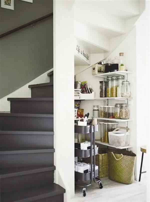 业主根据自己的喜好设计楼梯时,要把楼梯下方的空间也一并利用起来。可别小看了楼梯下方的小空间,只要设计合理,小空间也能有大作用。