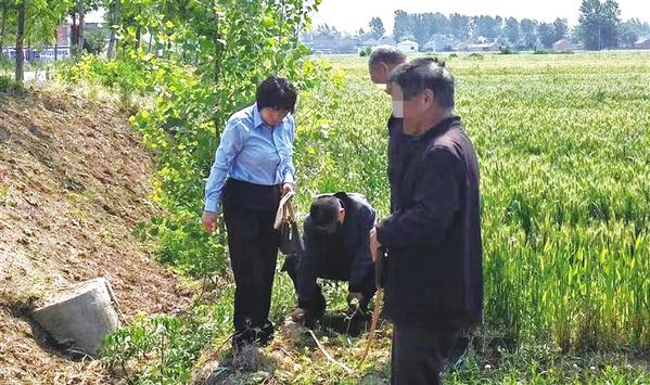 本报讯 远亲不如近邻,千金难买邻里情。5月12日上午,项城市人民法院贾岭法庭庭长王艳玲带领书记员,来到项城市范集镇某某村,在该村干部的见证下,针对争议土地纠纷案进行实地测量(如图)、定桩划界,双方当事人心服口服、握手言和。