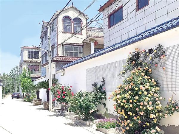 5月18日,鹿邑县穆店乡梅庄村鲜花映衬在整洁的村道内,令人眼前一亮。