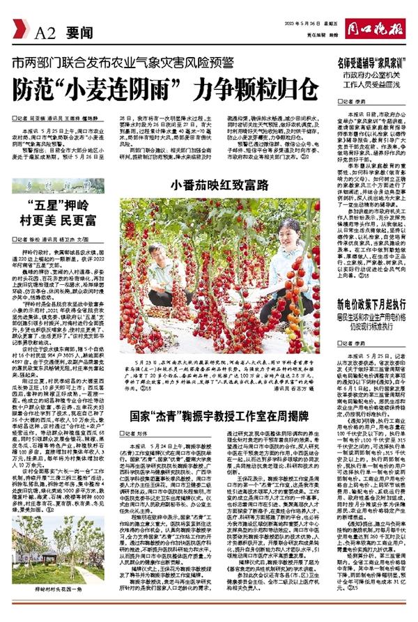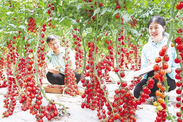 5月23日,在河南农大扶沟蔬菜研究院,河南省人大代表、周口市科普首席专家马强(左一)和技术员一起察看番茄新品种长势。马强致力于新品种的研发和推广,培育了20多个西瓜、番茄新品种,示范推广达100万亩,亩均产值达2.8万元,带动了群众致富,助力乡村振兴,发挥了“人民选我当代表、我当代表带民富”的先锋作用。②18通讯员 谷志方 摄