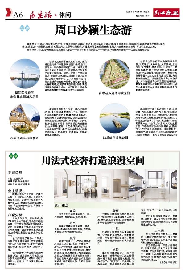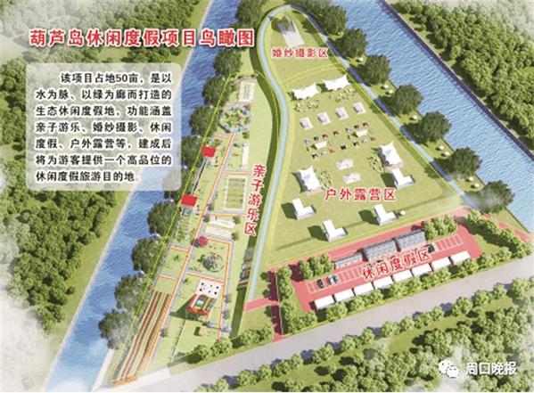 该项目位于沈丘县沙颍河上游,S102 以南,西起县城边线的西北角,东至颍河大道,沿线长约 8km,包含颍河八景旅游风光带、水文化体验主体乐园、农耕文化体验主题乐园等。打造以水上蹦床、游船赏景等为主,结合现状水系的水文化主题乐园;打造游客可参与的家庭农场,提供“开心农田”私人认领场地 ,供游客租赁,自种自收,体验农耕及田园乐趣的农耕文化体验主题园。(据周口晚报微信公众号)
