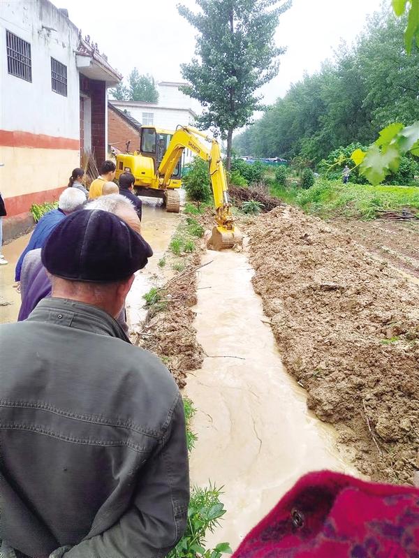 5月28日,商水县平店乡党员干部组织10多台挖机、喷灌机对小麦田间积水和各村支沟毛渠堵点20多处进行排涝。