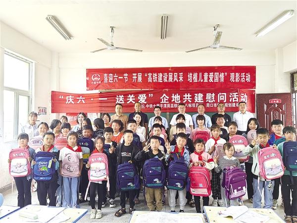 本报讯 “爸爸好久没有给我买书包了,这个书包我很喜欢!”西华县东王营乡老家小学刘致富小朋友接过新书包高兴地说。5月26日,中铁七局集团新建平漯周高铁站前八标项目经理部、市铁办来到淮阳区曹河乡四所楼小学和西华县东王营乡老家小学,开展“‘六一’送关爱 真情暖童心”慰问活动,为孩子们送去节日祝福,同时向基层教育工作者表示衷心感谢和崇高敬意。