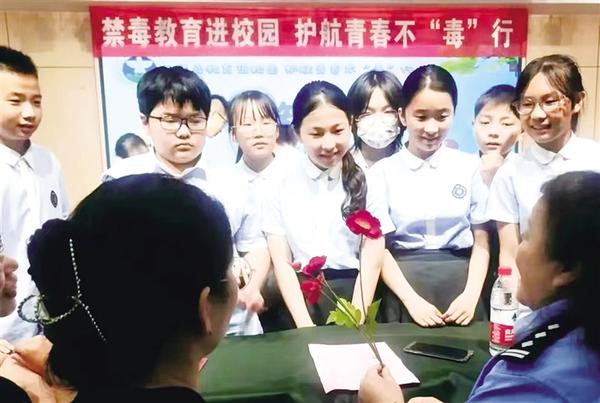5月26日,市公安局禁毒支队和川汇区公安分局禁毒大队民警前往辖区小学,开展禁毒宣传进校园活动。通过此次活动,同学们了解了基本的毒品知识,明白了毒品的危害。他们纷纷表示,将从自我做起,远离毒品,争当禁毒小卫士。记者 任富强 通讯员 张保全 摄