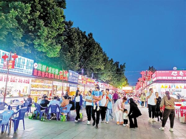 炎炎夏日,夜市是一道靓丽的风景,滋滋冒油的烤肉、红彤彤的小龙虾、冒着气泡的冰镇啤酒……这些美食是否勾起了您的味蕾?在周口市中心城区,南广场夜市等传统美食聚集地热闹依旧,新开的五一好吃城等新场所活力十足。这些夜市“老面孔”见证了我市夜经济的发展与繁荣,夜市“新面孔”则为繁华的夜晚带来更多朝气与活力。