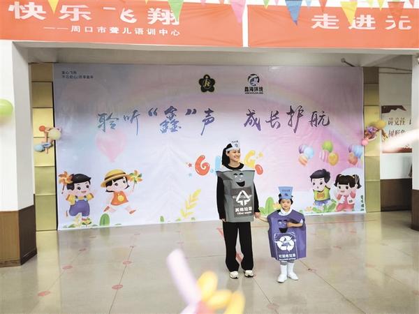 5月30日上午,市残联一楼大厅, “聆听‘鑫’声,成长护航”活动正在这里举行,市残联聋儿听力训练中心的孩子们身着由环保袋做成的服装,和河南鑫海环境工程有限公司的志愿者们表演《环保走秀》,大厅内欢声笑语。当日,河南鑫海环境工程有限公司向市残联聋儿听力训练中心捐赠了教学一体机、康复机、儿童学习用品、玩具、校服等价值5万元的物资,并和孩子们共同表演节目,庆祝“六一”儿童节。