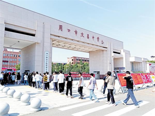 6月6日下午3时许,周口市文昌中学考点考生有序进入考场。当日,我市9.1万考生走进考点,进行智能安检门、金属探测器、身份验证等环节演练,熟悉考试环境,迎战高考。记者 刘华志 摄