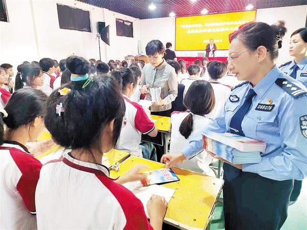 据了解,为全面贯彻法治宣传教育,进一步强化青少年尊法、学法、守法、用法的意识,保护青少年合法权益,近日,周口市公安局组织全市公安法治部门业务骨干组成送法进校园讲师团,到我市临港开发区、淮阳区、郸城县,以“防范校园欺凌、护航青春成长”为主题,向15所学校学生宣讲法律知识,一堂堂生动的法治课在民警与学生的一问一答中推向高潮。