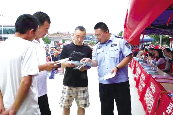 近日,商水县公安局民警深入东城办事处苏坡村,利用开展“倡导家事新办 建设和美乡村”暨“三下乡”精神文明宣传的有利时机,开展反诈骗宣传活动,推动“全民反诈在行动”集中宣传月活动开展。记者 任富强 通讯员 许艳灵 摄