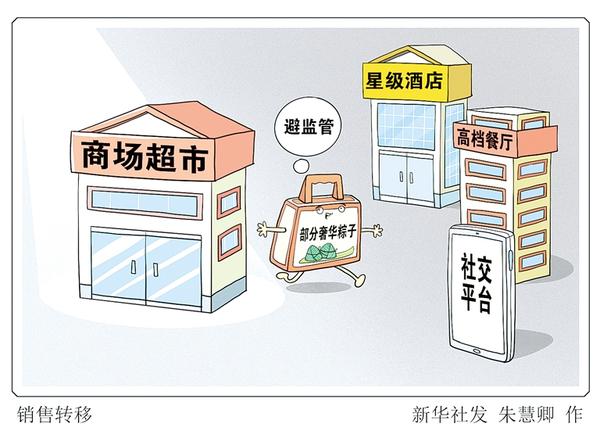 记者发现,近年来,有关部门加大对“天价”食品、过度包装等问题的监管,部分奢华粽子的销售“由明转暗”,从商场超市向星级酒店、高档餐厅、社交平台转移。