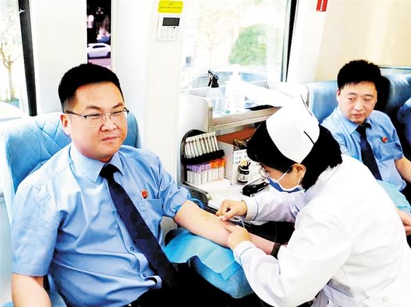 近日,川汇区人民检察院组织党员干警参加无偿献血志愿活动。党员干警纷纷表示,无偿献血是一项社会公益活动,既是一项社会责任,也是一名党员应尽的义务,参与这样的活动感到无比自豪和光荣。 通讯员 白洁茹 摄