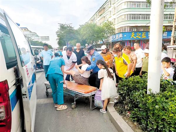 当日17时30分许,鹿邑县真源大道北段徐园路口发生一起两辆电动车相撞引发的交通事故。正在执勤的责任路段执法队员杨一轩、刘贝、李永坤、孙权获悉后,立即停车查看情况,当发现一名女青年因腿部受伤坐在地上不能动时,就拨打了120急救电话,待医务人员到达现场后,又齐力把受伤女青年抬上救护车。不久前,该县大润城商场老板为他们赠送了一面绣有“办事最高效、服务最热情”字样的锦旗。③6
