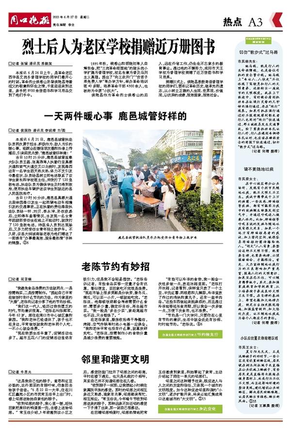 邻里之间这种赠予往来,既促进人与人之间的友谊和信任,又体现一个城市的文明程度。如今这种促进邻里和谐的“小文明”,逐步扩散开来,将来必能汇集成周口这座城市的“大文明”。②15