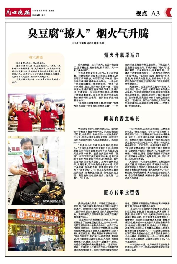 “从小吃到大,从郑州追到周口,从梦里追到现实。”食客冯超说。今年三十出头的他,目前在郑州工作。对长期在郑工作生活的冯超来说,能吃上一份王福州臭豆腐,简直是梦寐以求。每次回到周口,他总会第一时间到王福州臭豆腐(七一路店)吃上一口。所有口味的臭豆腐他都吃过,吃过豆花,也买过臭豆腐礼盒。“我以前做梦都想让王福州臭豆腐开到郑州去,让像我这样在外打拼的周口人吃上家乡的味道。”冯超说,现在,王福州臭豆腐不仅在郑州,在河南各地甚至已经销售到上海、苏州、武汉、北京、杭州等地。