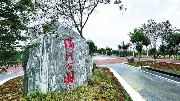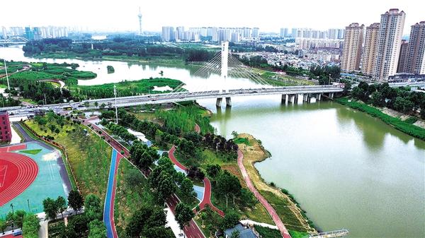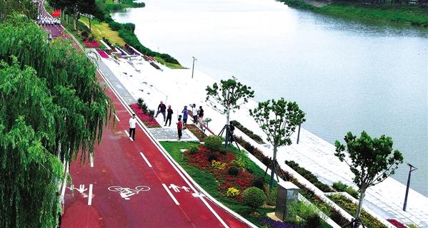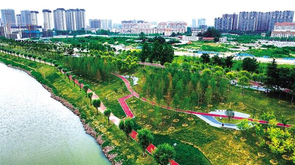 本版图片显示的位置是沙颍河三期工程的启动段,位于大庆路至八一大道之间的沙颍河北岸,全长1500米,面积17万平方米(255亩),2022年10月15日开工建设,现已基本完工。规划布局上,以植物造景为主,充分体现园林植物的季相特色,合理配置乔、灌、花、草120余种,形成林水一体、花繁叶茂、三季有花、四季常绿的景观格局。