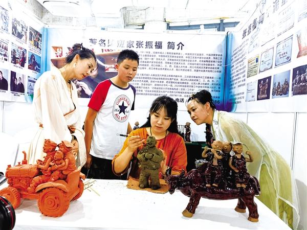 本报讯 6月30日上午,首届中国民间艺人交流大会在浙江省衢州市文化艺术中心开幕。河南省省级非物质文化遗产“郸城泥塑”第六代传承人张玉萍应邀携16件泥塑作品(包括丹钧瓷泥塑8件、原生态泥人8件)参加首届中国民间艺人交流大会。
