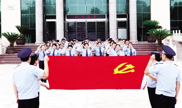 为弘扬伟大建党精神,彰显检察担当,增强检察干警的凝聚力和荣誉感,6月29日上午,扶沟县人民检察院举行庆“七一”升国旗、重温入党誓词活动,为中国共产党献上扶沟检察人的深情告白,以这种特殊的方式,庆祝中国共产党建党102周年。通讯员 马雪雨 万晓康 摄